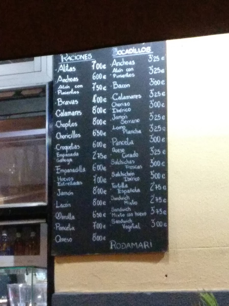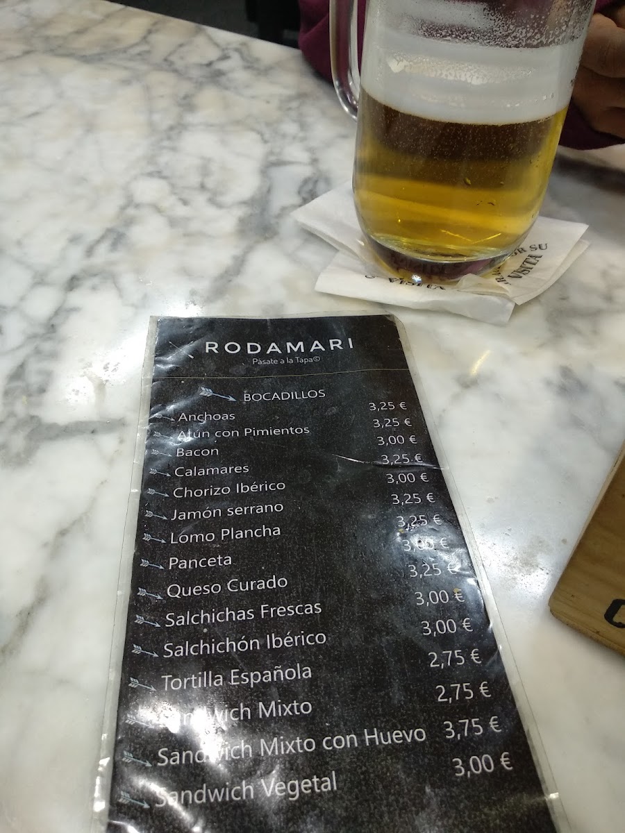 Located in the heart of Madrid, Rodamari is a vibrant tapas bar that promises a delightful culinary experience. The menu boasts a wide array of traditional tapas, perfect for sharing and sampling. Enjoy crispy Calamares (€8.00) or flavorful Morcilla (€6.50) that highlights authentic Spanish flavors. Don’t miss the Jamón (€8.00) and Empanada Gallega (€2.75), both rich in heritage and taste.